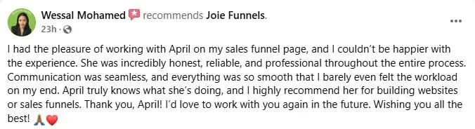A. A simple funnel can be ready in 7-14 days. More advanced setups may take longer (3-5 weeks), but I’ll keep you in the loop the whole time.